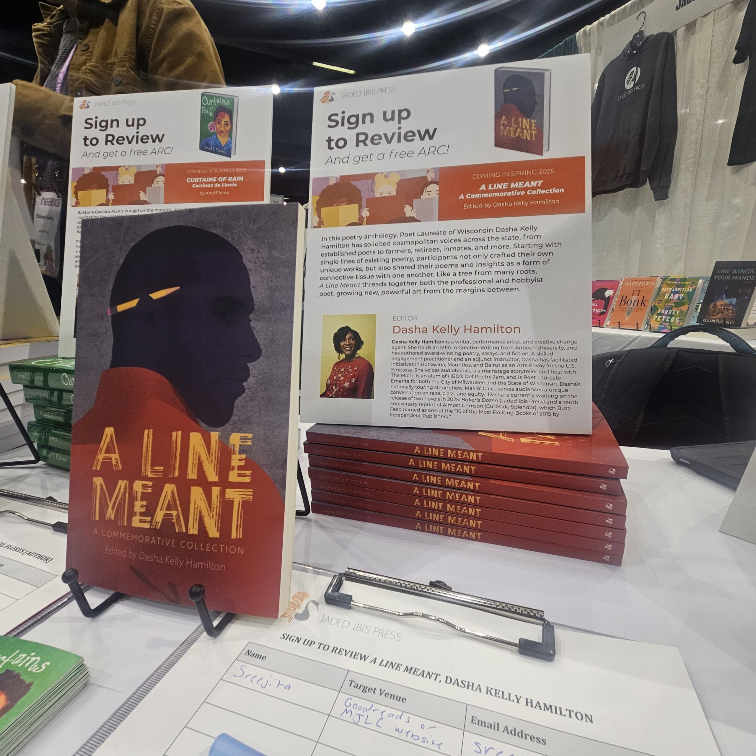 A Line Meant is a poetry exchange, created by Wisconsin Poet Laureate Emerita Dasha Kelly Hamilton. For the two years of her term, new works were traded randomly between laureates, farmers, inmates, students, novices, curious and generous souls.